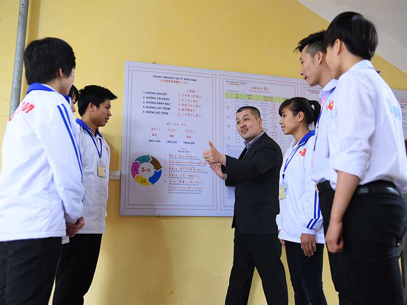 Giáo viên người Nhật tận tâm dạy tiếng cho các bạn thực tập sinh để các bạn đạt được trình độ tiếng Nhật cao nhất trước khi xuất cảnh